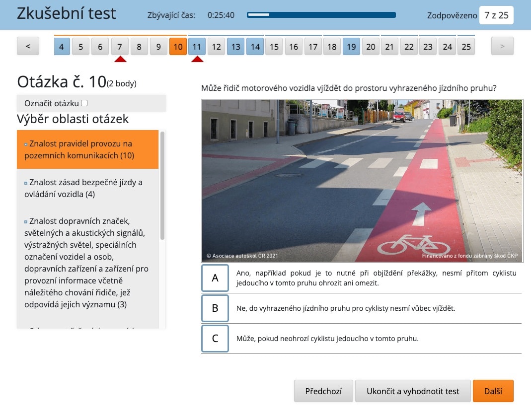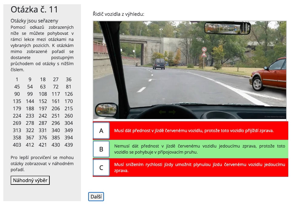 ❓Proč? Na stránkách ministerstva se do testů nevkládají všechny otázky. Tak byste se k některým otázkám nikdy nedostali… ALE vzhled – prostředí je identické se vzhledem u zkoušky.