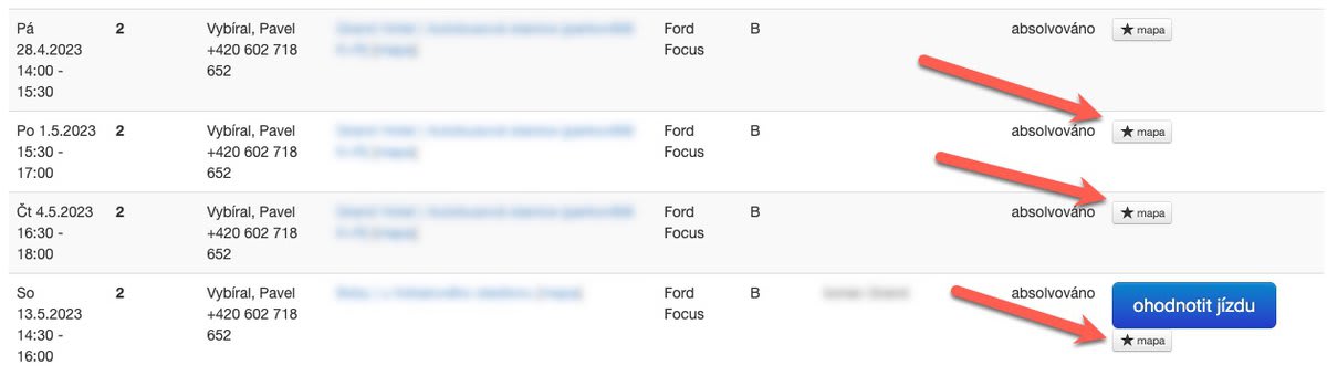 Na konci řádku s jízdou je tlačítko “Mapa”, pod který naleznete mapu z jízdy.