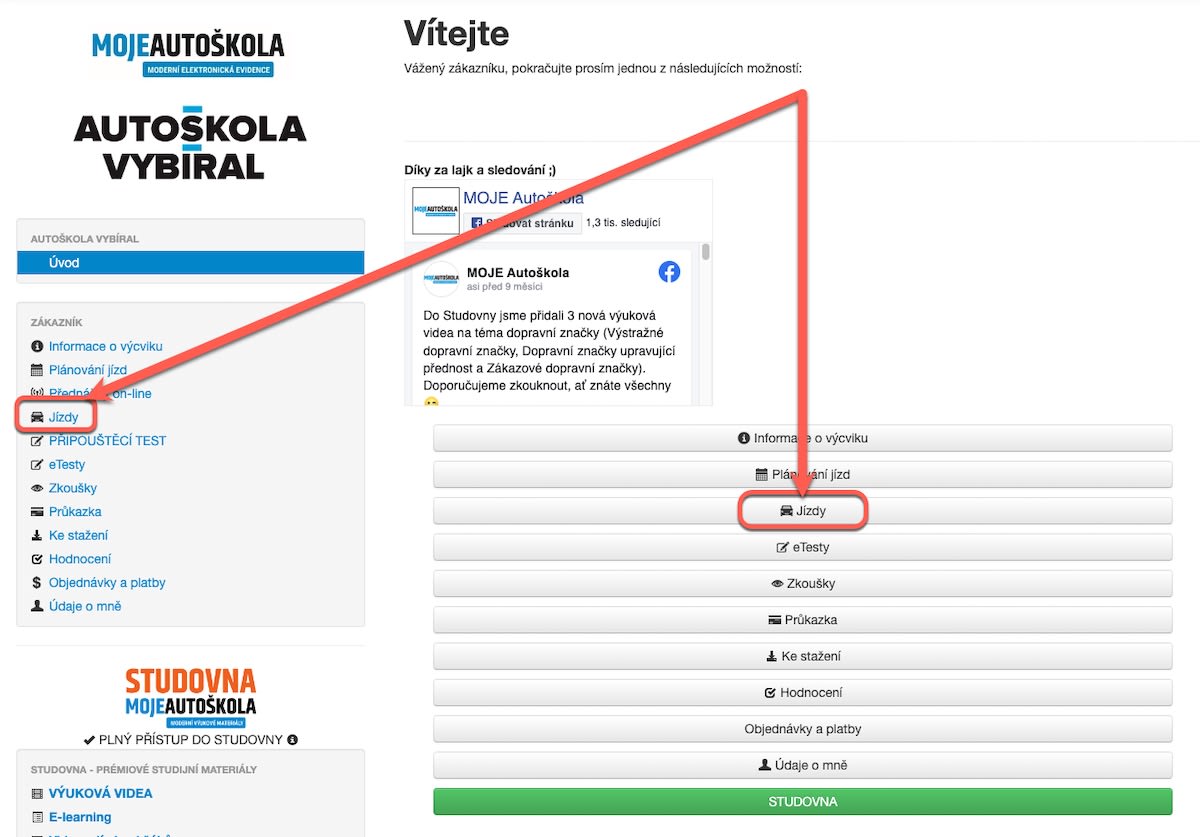 1. Přihlašte se do Online evidečního sytému (MOJE AUTOŠKOLA)